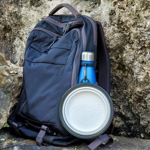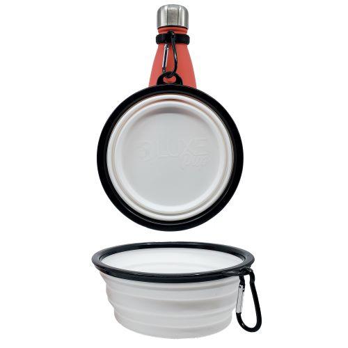 - Set Includes Travel Bowl + Silicone Carrier with Carabiner Clip for easy attachment to Luxe Hydration Water Bottles (or similar)