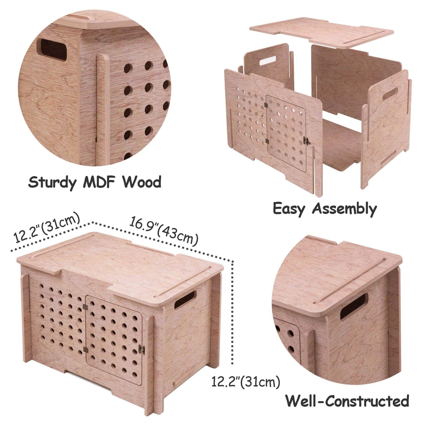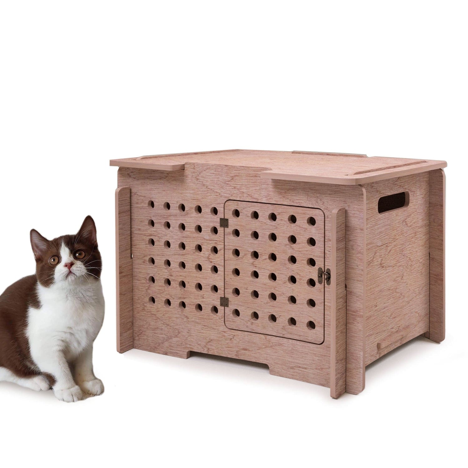 - PORTABLE PET CARRIER- Built with handles on the sides, a lockable door and various venting holes in the front, the wooden pet house can easily be transformed into a safe pet carrier. Now your pet has for themselves a comfortable on-the-go home!