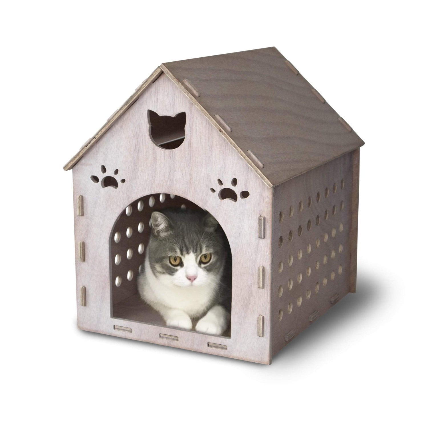 - STURDY PET HOUSE - Our wooden kitty and dog house is made of plywood. Sturdy shelter for your cats and dogs. Pound for pound, plywood is stronger than steel in static bending strength. Perfect hide house for dogs, cats and rabbits that sleep in garages, porches, barns, or even in the home