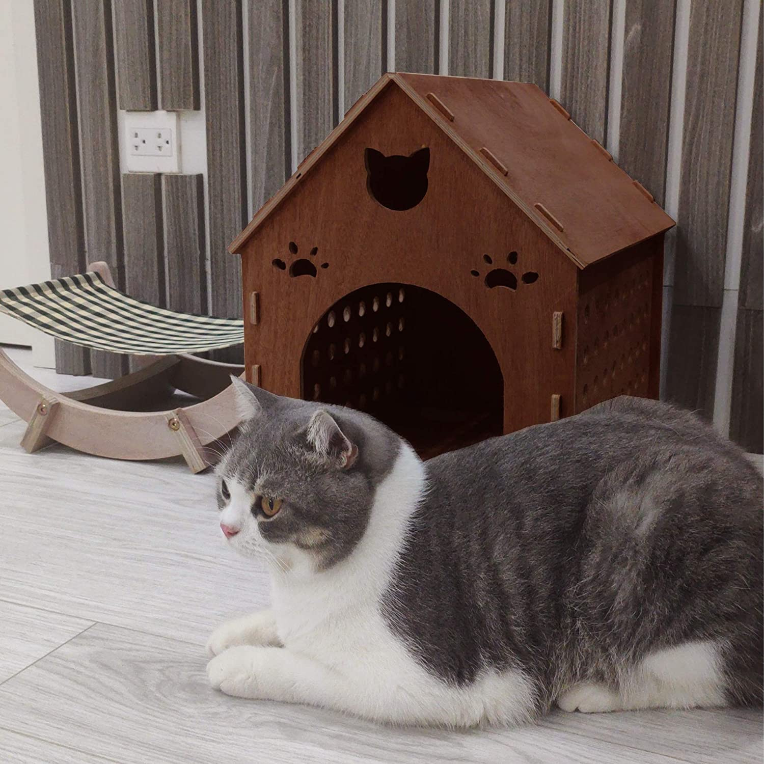 Wooden Kitty House Cat Shelter House for Cats, Rabbits, Dogs and Small Pets